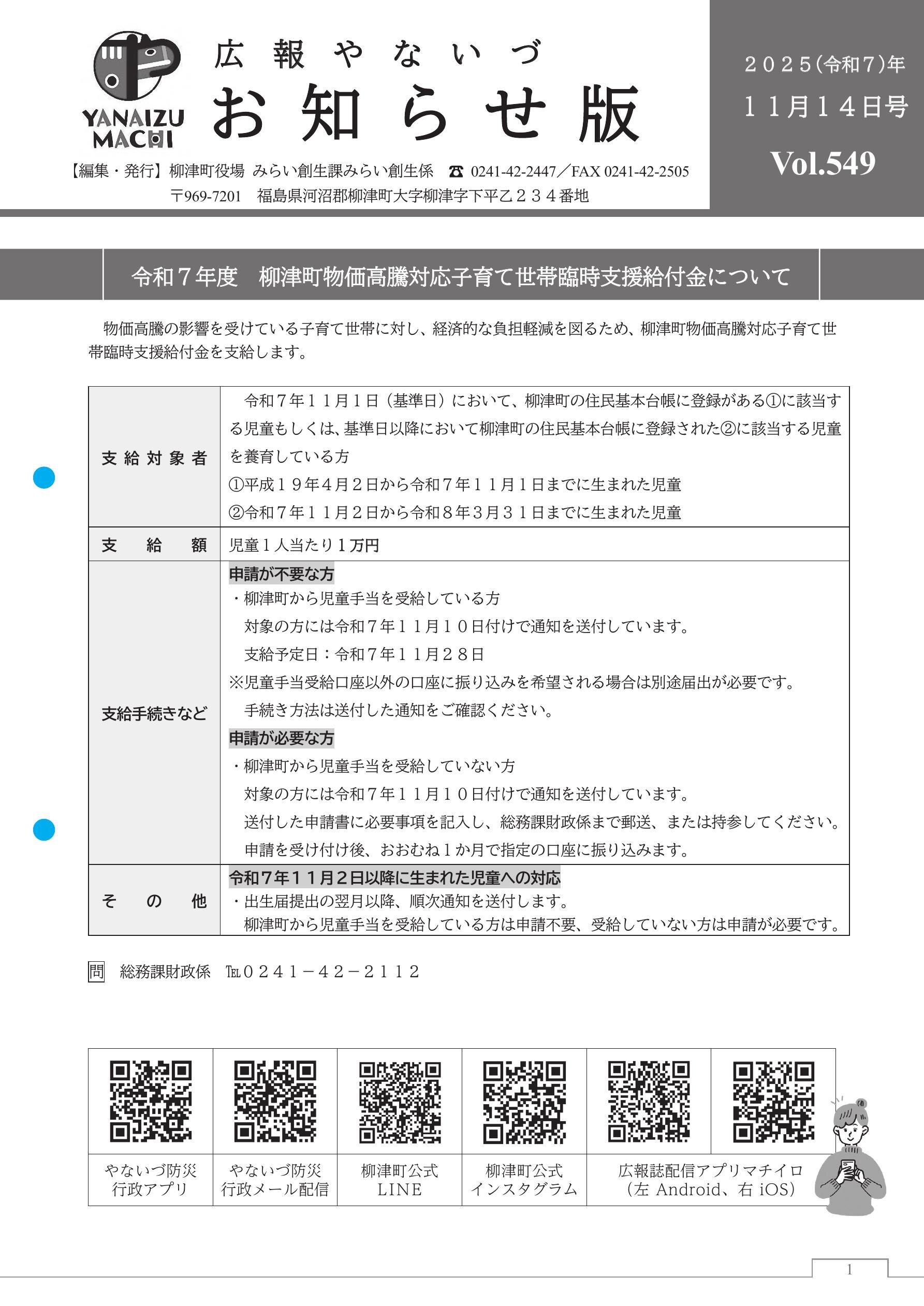 広報やないづお知らせ版 2025年11月14日号