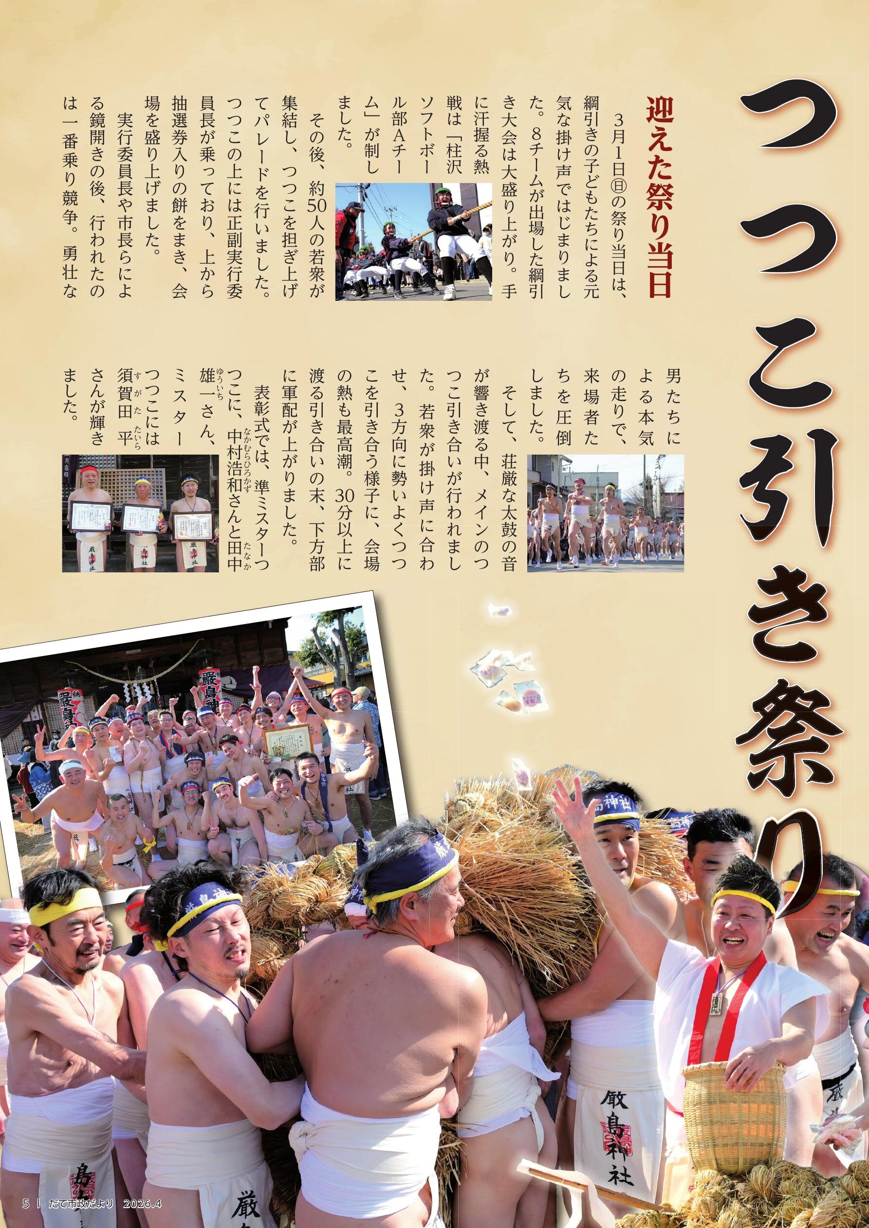 P2…目次、人口と世帯 P4…ふくしまDC がはじまります!! P8…Pick up Topics ★「つつこ引き祭り」
