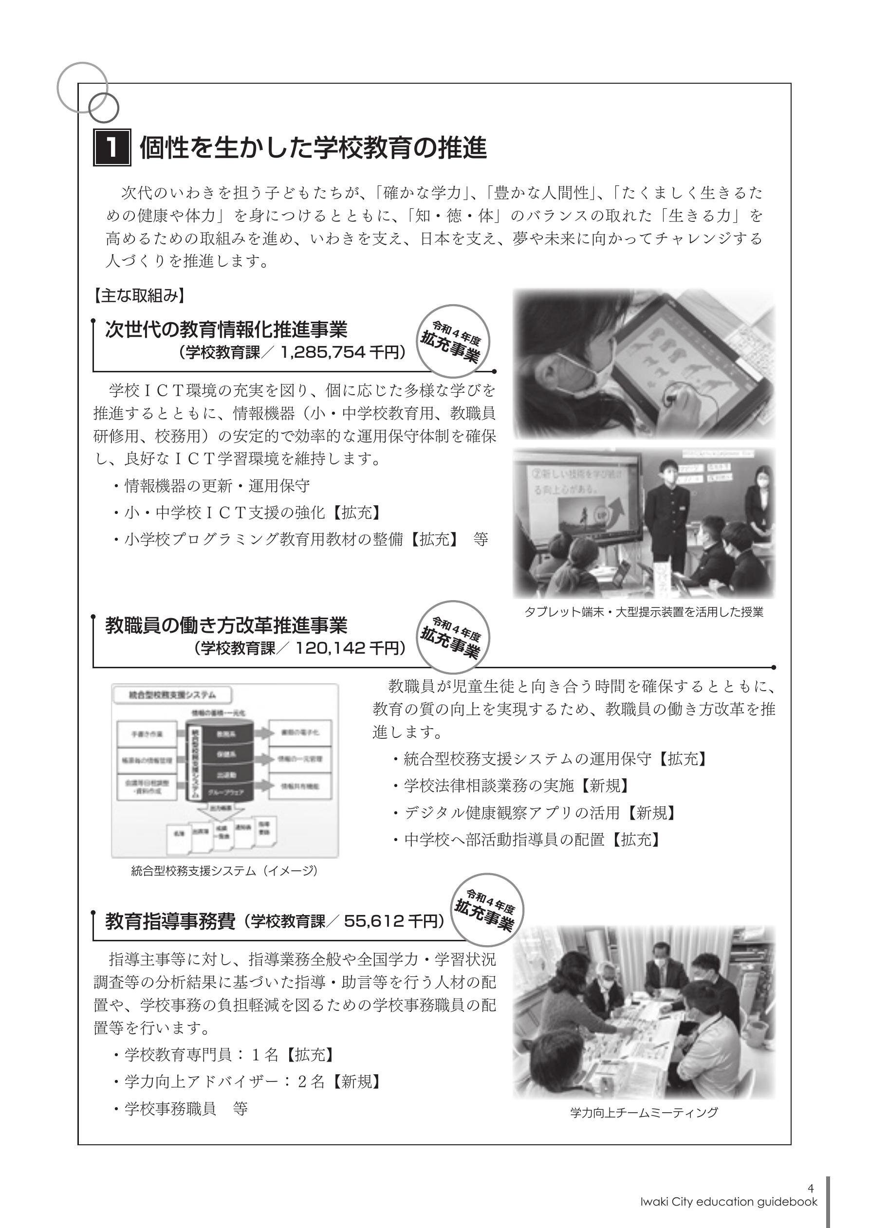 Ⅰ 教育委員会のしくみ 1 Ⅱ いわき市の教育に関する主な取組み 3 Ⅲ Q&A 疑問・質問にお答えします 12 Ⅳ 施設INFORMATION 17