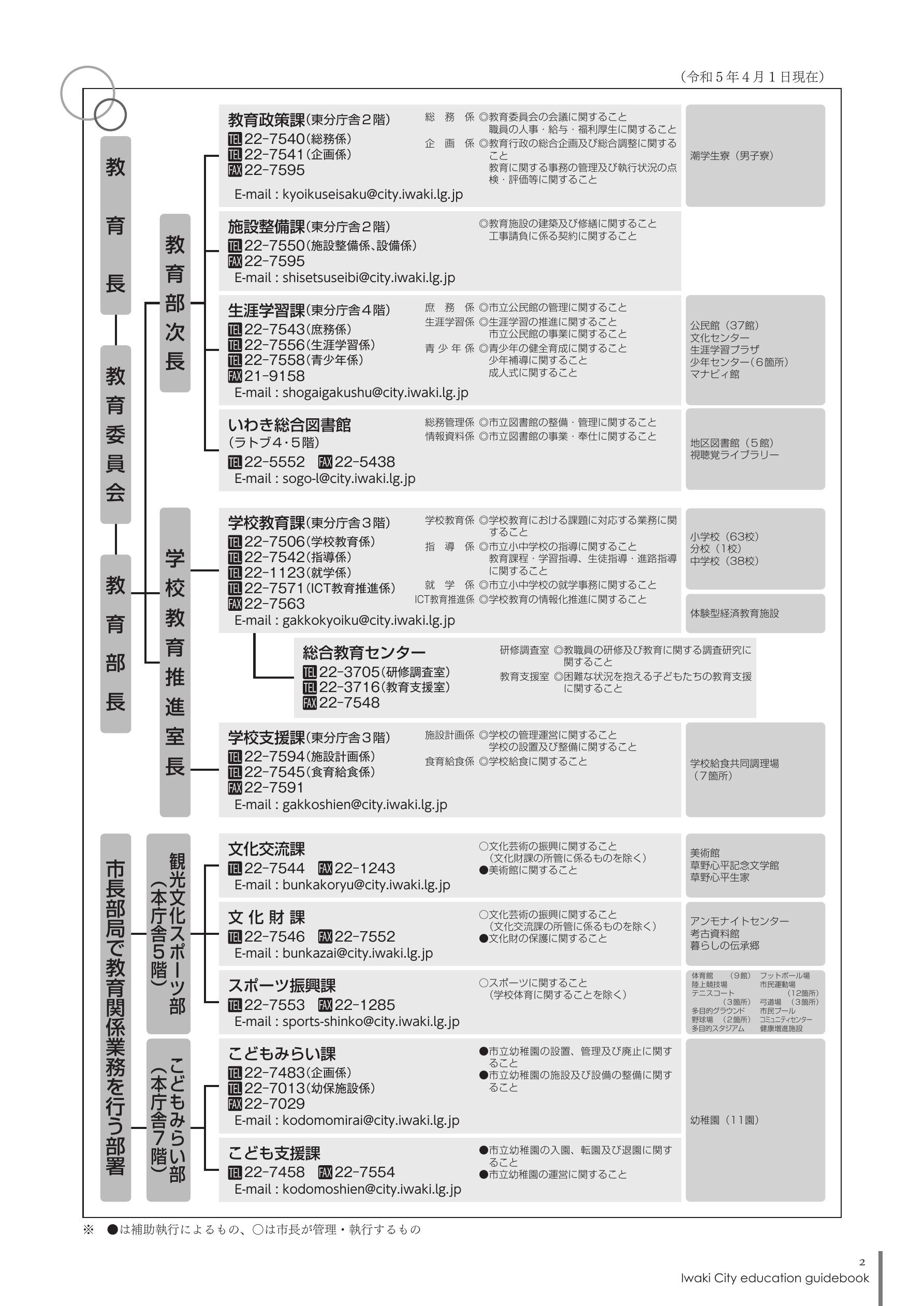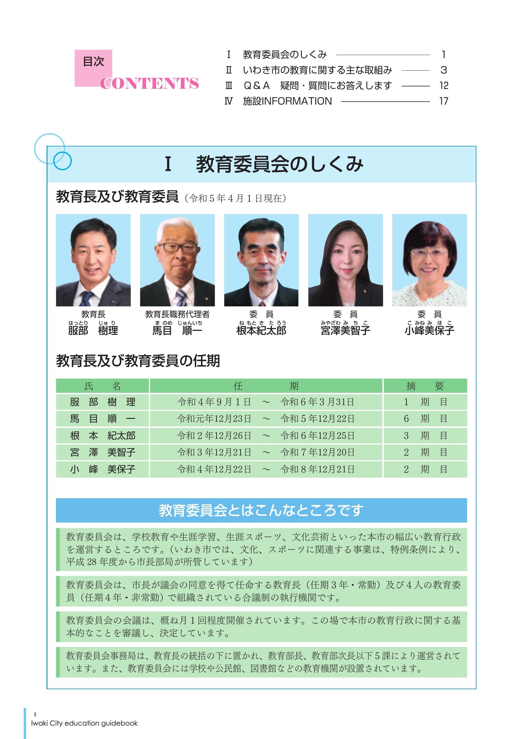 Ⅰ 教育委員会のしくみ 1 Ⅱ いわき市の教育に関する主な取組み 3 Ⅲ Q&A 疑問・質問にお答えします 12 Ⅳ 施設INFORMATION 17