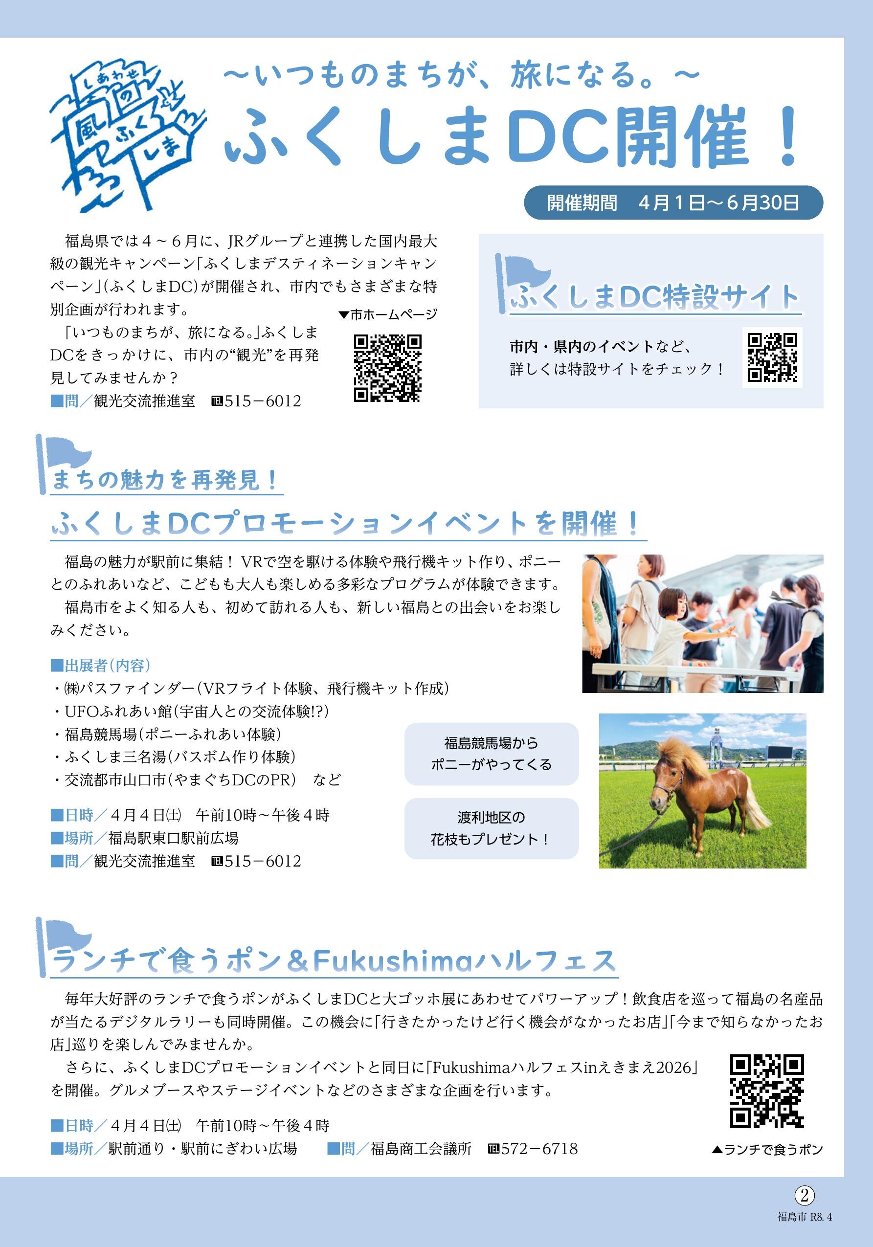 特集 ~いつものまちが、旅になる。~ふくしまデスティネーションキャンペーン開催!・・・ 2 新しい給食センターがオープンします・・・ 4