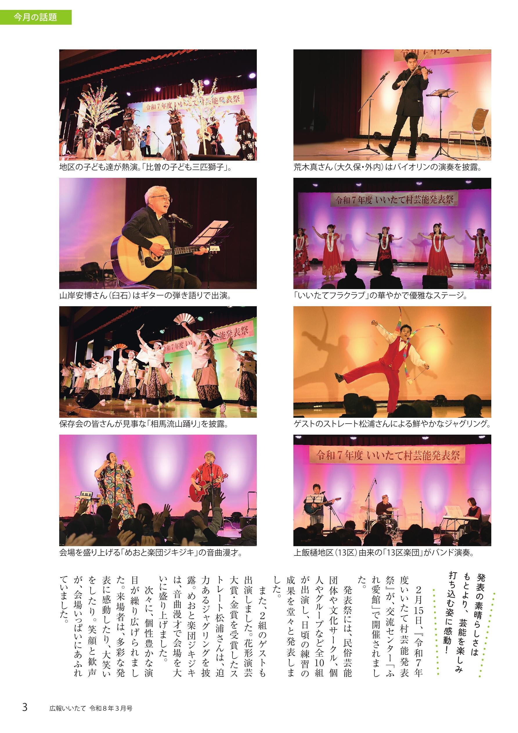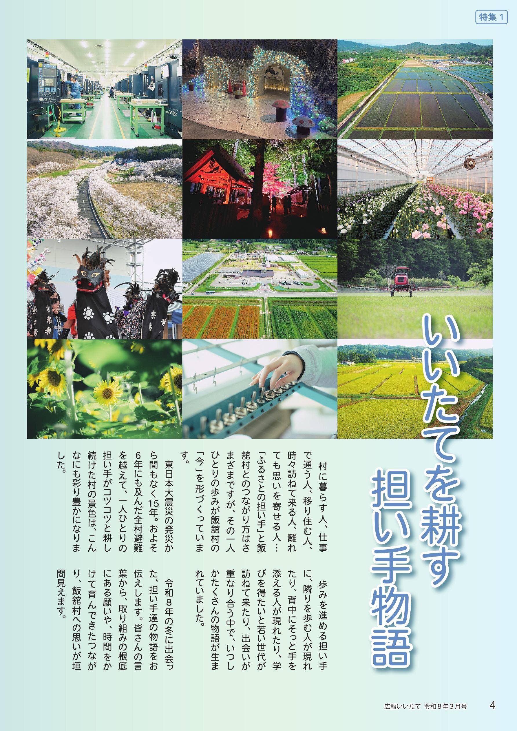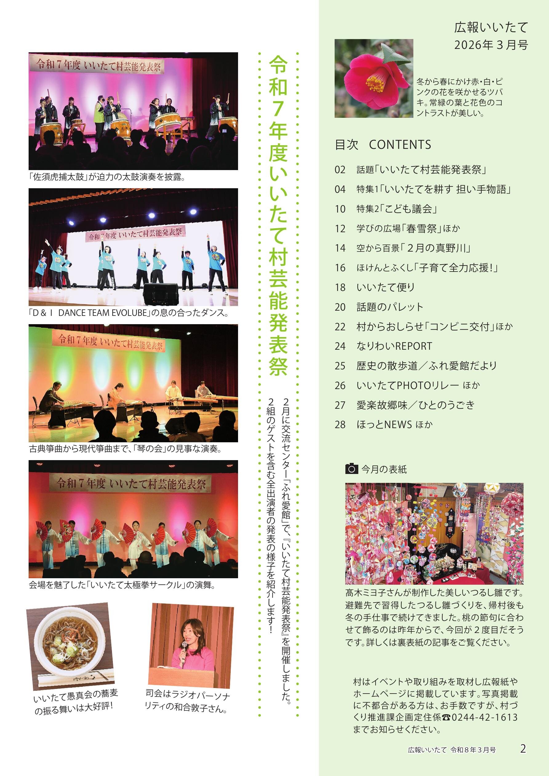 02 話題「いいたて村芸能発表祭」 04 特集1「いいたてを耕す 担い手物語」 08 特集2「子ども議会」