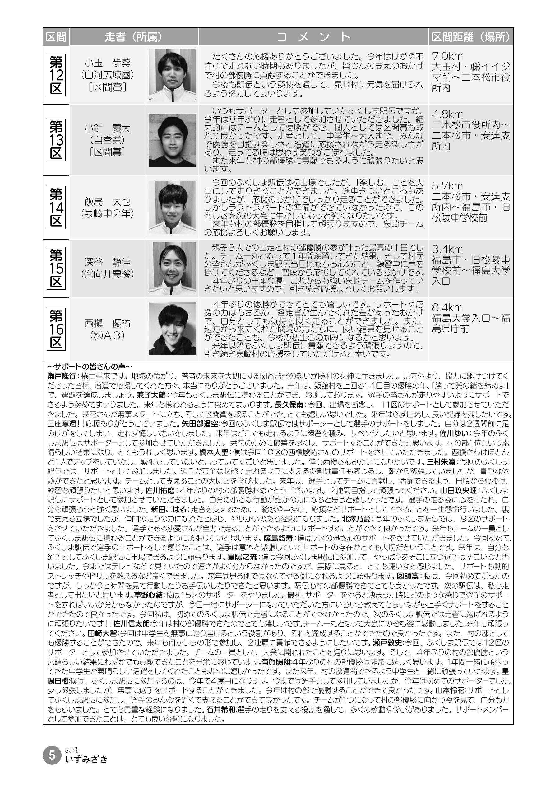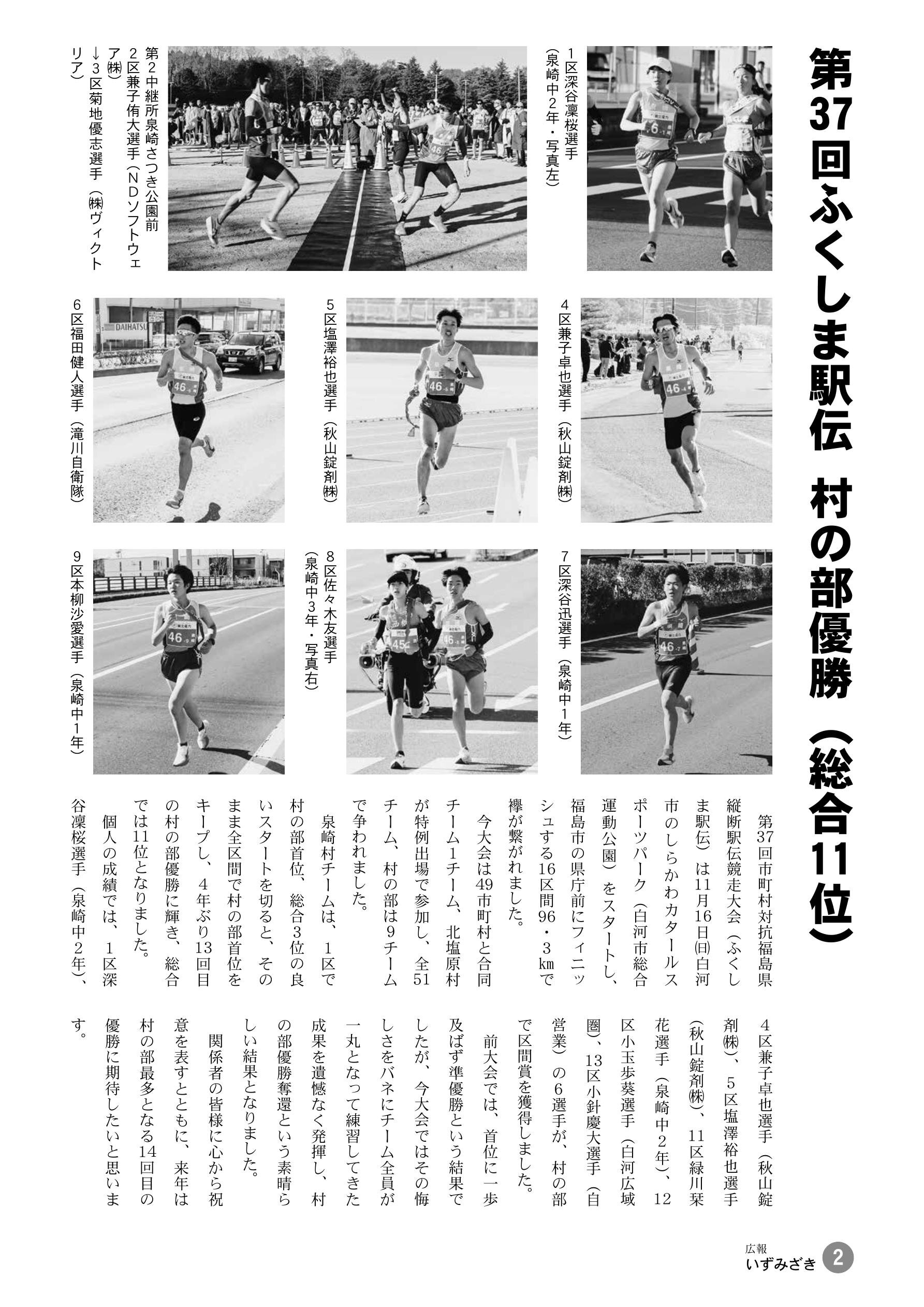 第37回ふくしま駅伝 村の部優勝・・・2 役場からの便り・・・6