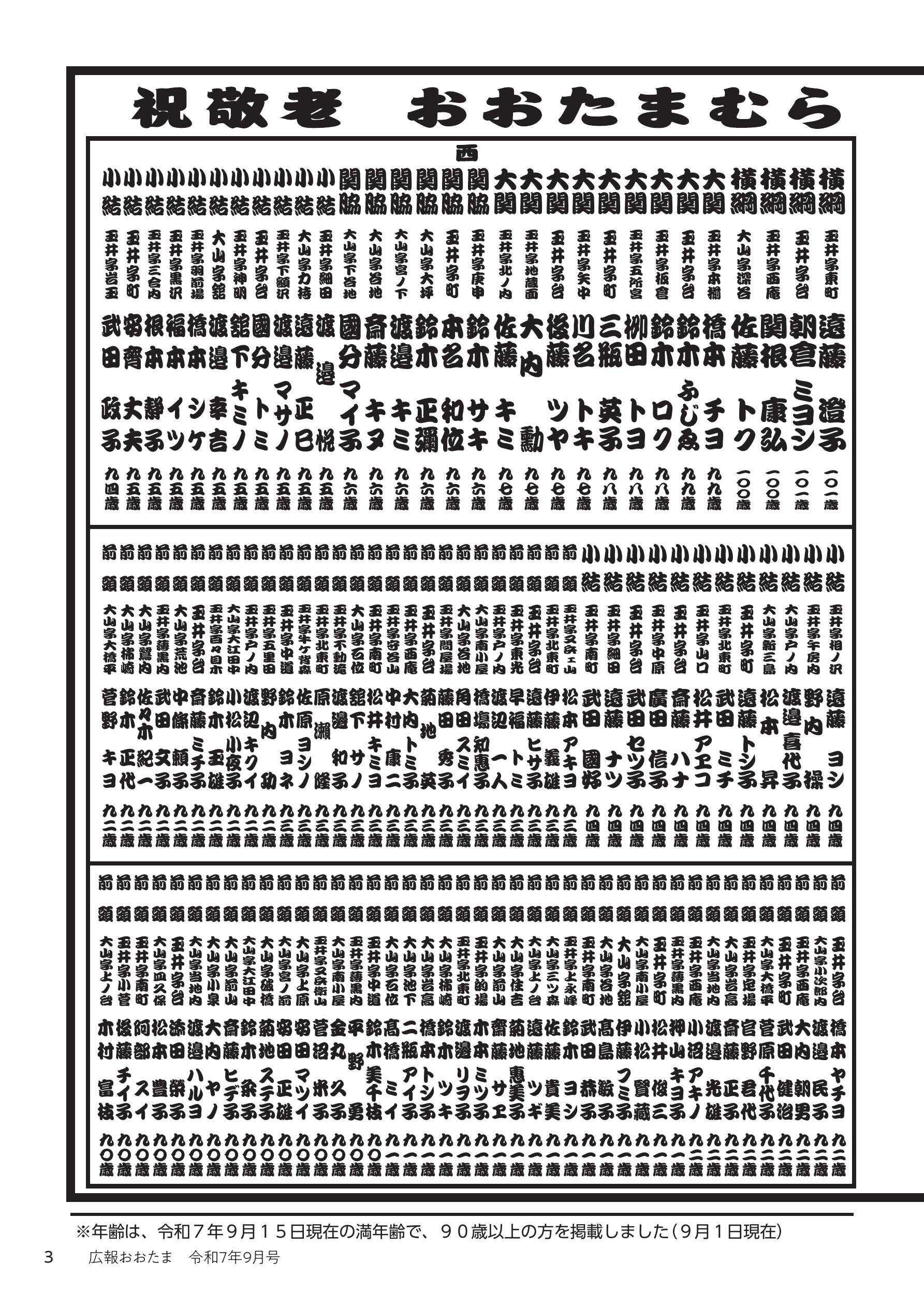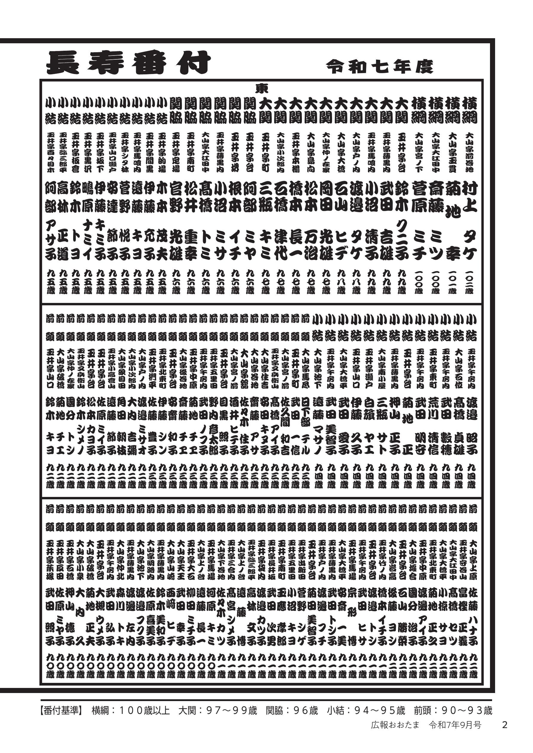 祝敬老 おおたまむら長寿番付・・・2 村の話題 あっちこっち・・・4
