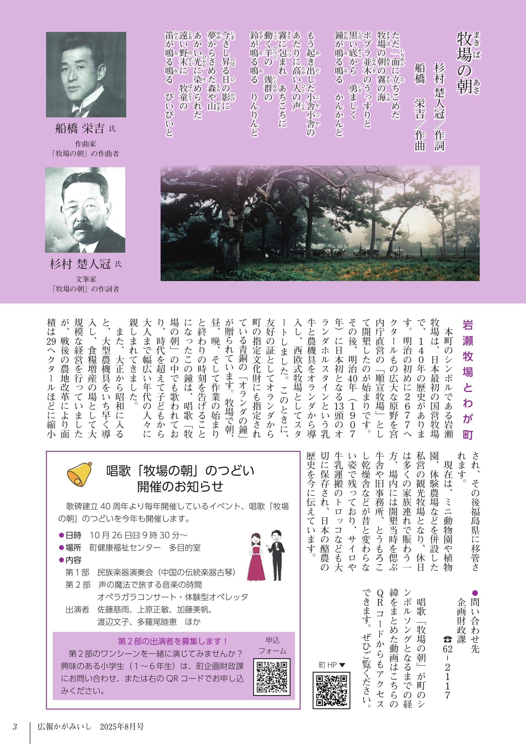 【特集】唱歌「牧場の朝」…P2~3 まちの話題…P4~6