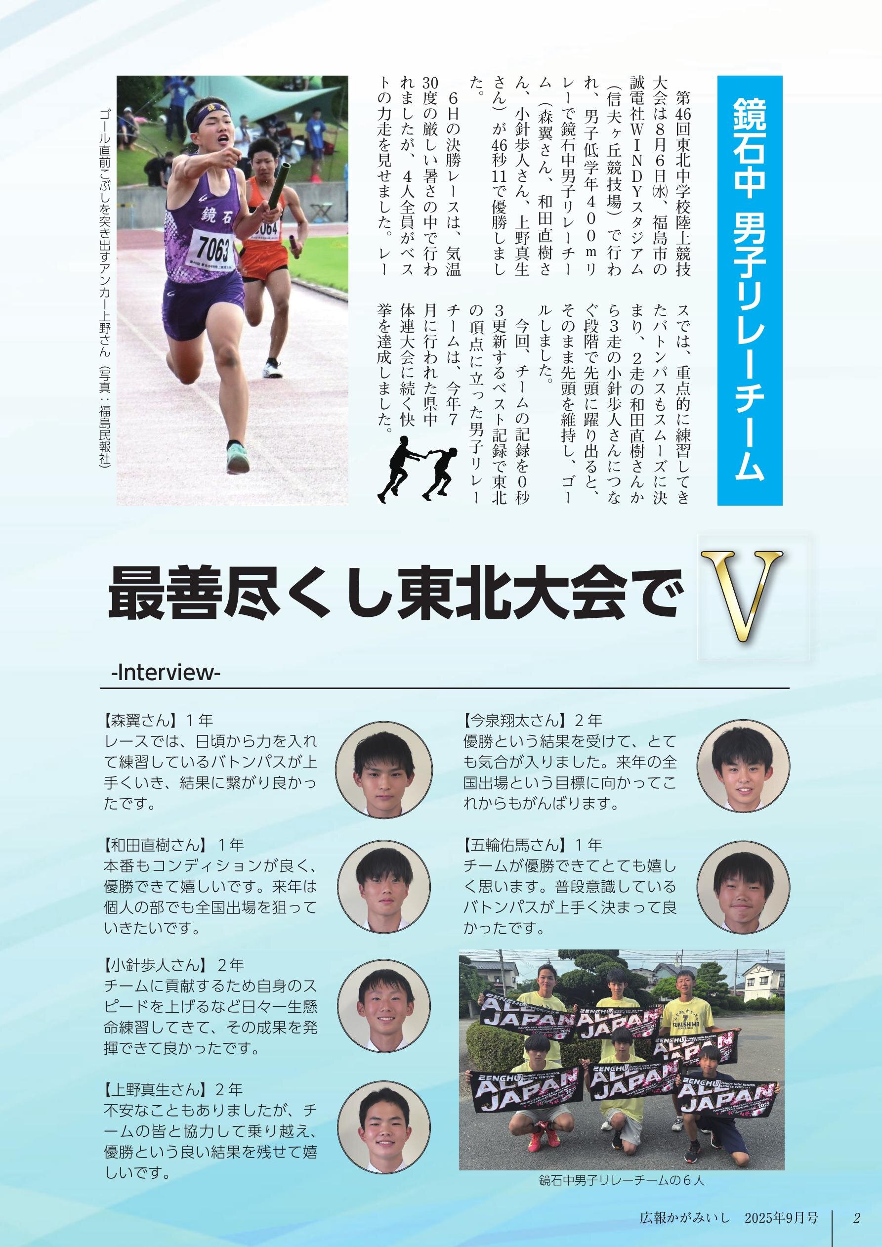 【特集】鏡石中男子リレー優勝…P2 まちの話題…P3~5