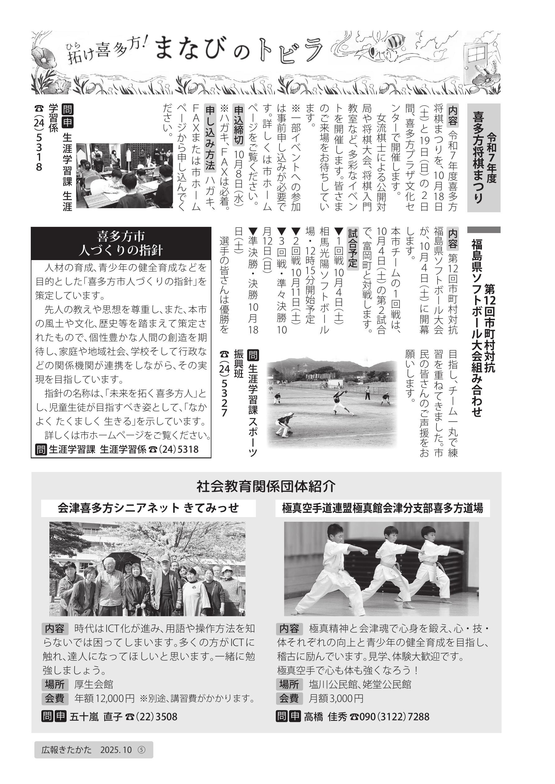 きれいな水を未来につなぐ …② 健康だより …④ 拓け喜多方!まなびのトビラ …⑤ 情報ステーション …⑥ きたかたフォトニュース …⑳