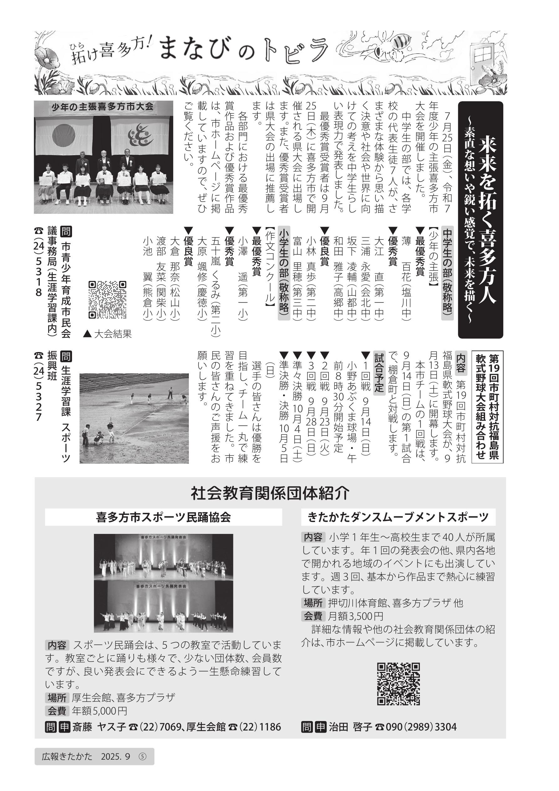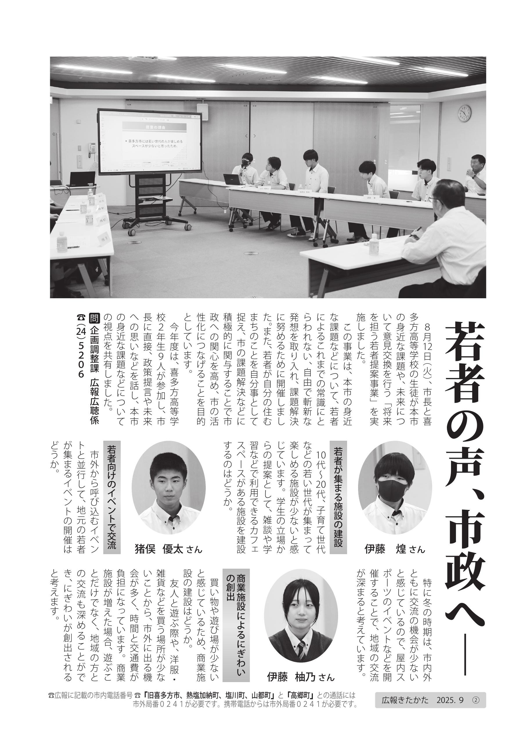 若者の声、市政へ …② 健康だより …④ 拓け喜多方!まなびのトビラ …⑤