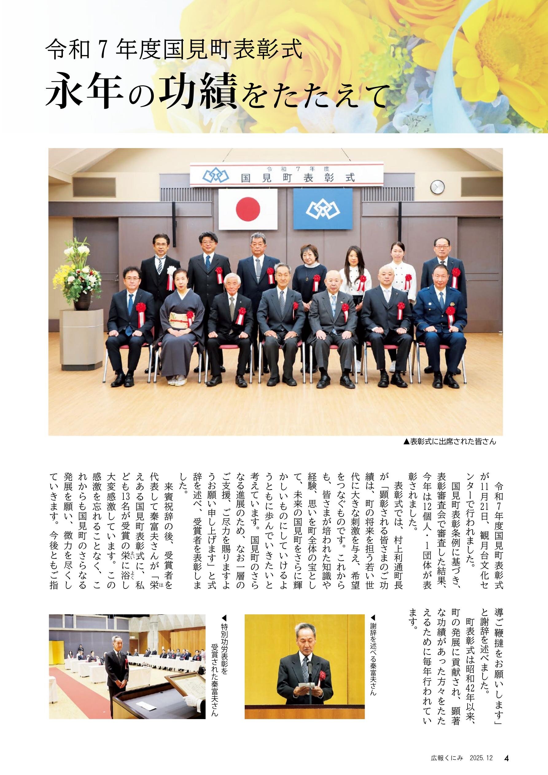 02 … 第49 回国見町駅伝競走大会 04 … 令和7 年度国見町表彰式 06 … 鹿島神社例大祭 09 … 年末年始の業務のお知らせ 12 … まちのわだい ほか
