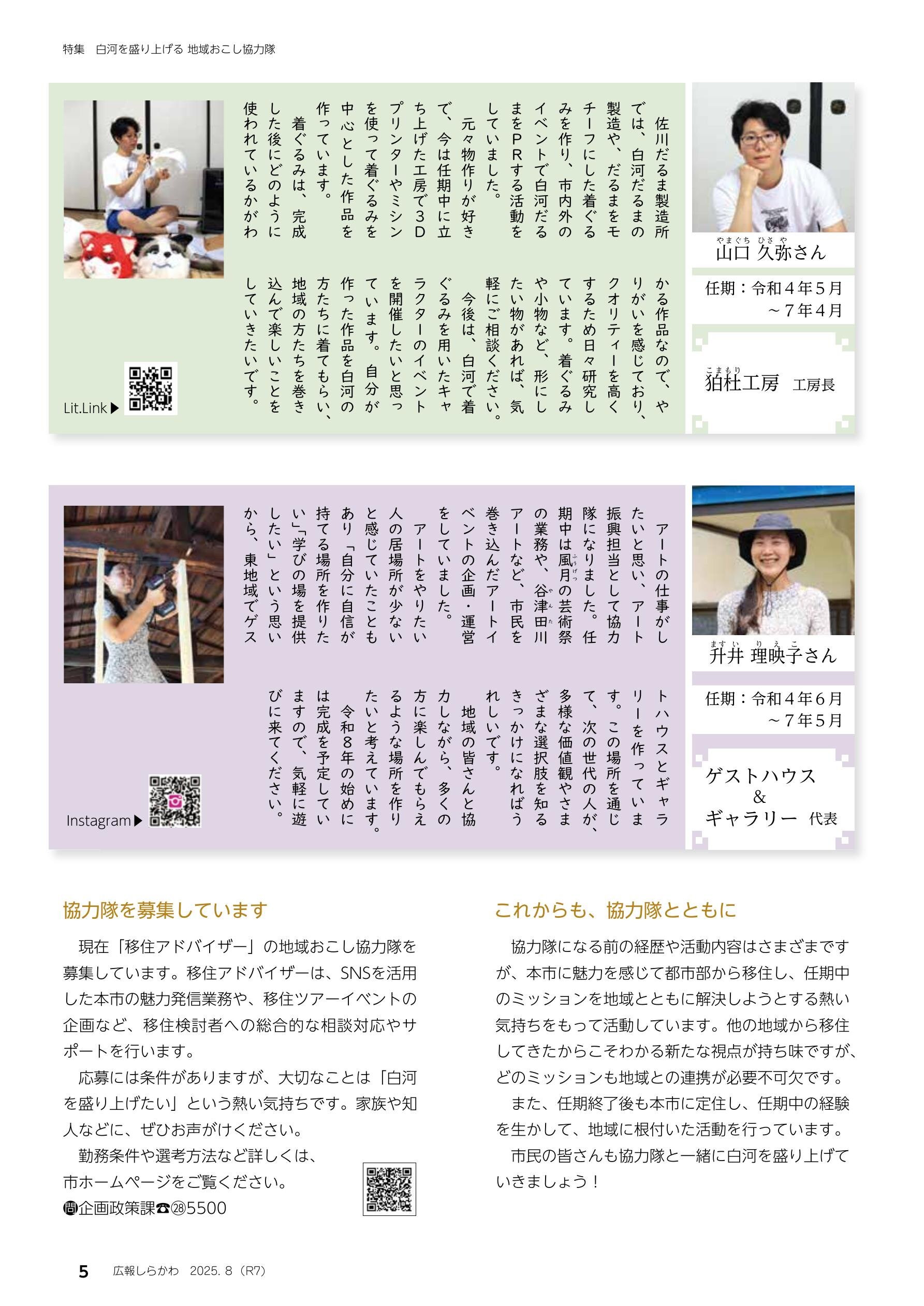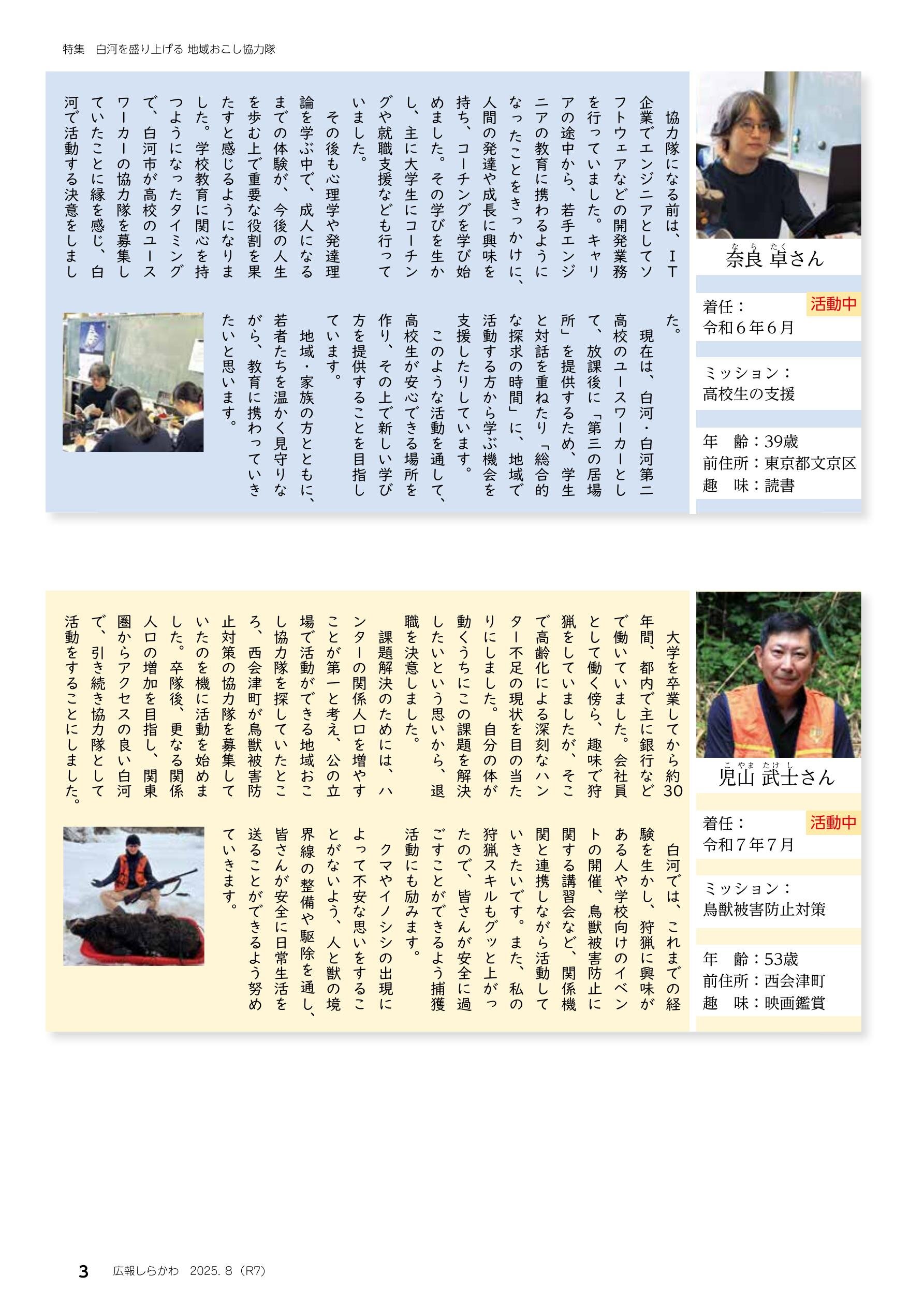 特集 白河を盛り上げる 地域おこし協力隊・・・2 お知らせ・・・6