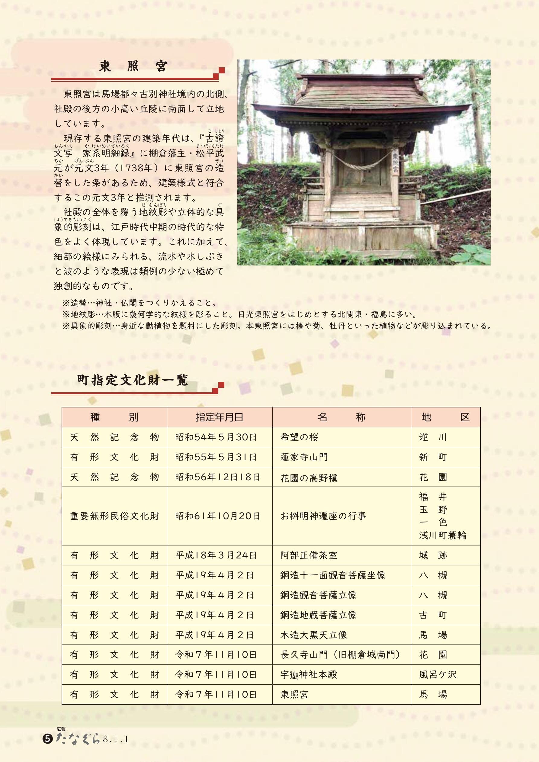 ◎新年のごあいさつ・・・2 ◎新たに3件が棚倉町有形文化財に指定されました・・・4 ◎民生委員・児童委員の皆さんをご紹介します・・・6