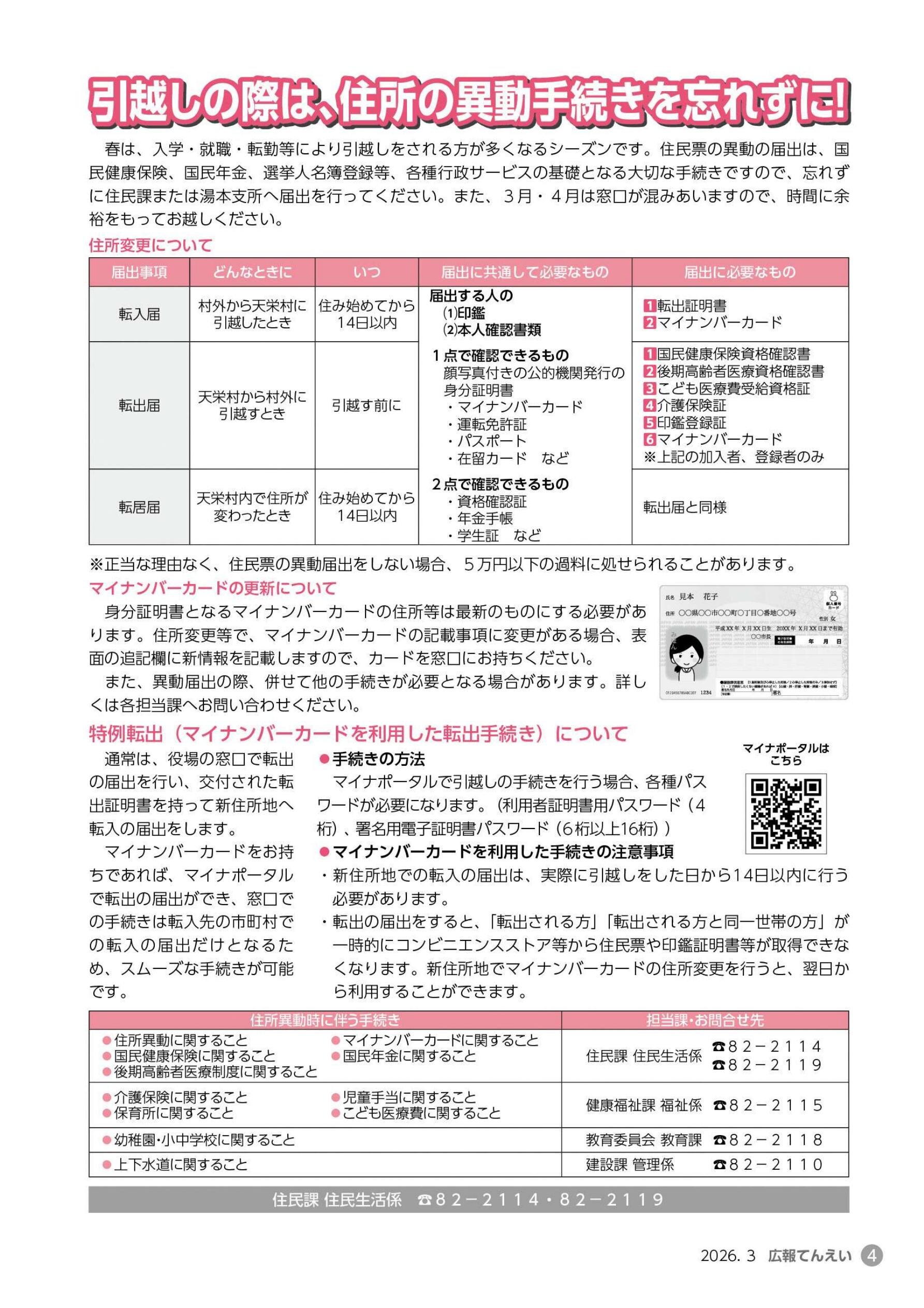 特集 子どもたちの心と体を育む天栄村の学校給食・・・ P2・3 引越しの際の手続き・・・ P4