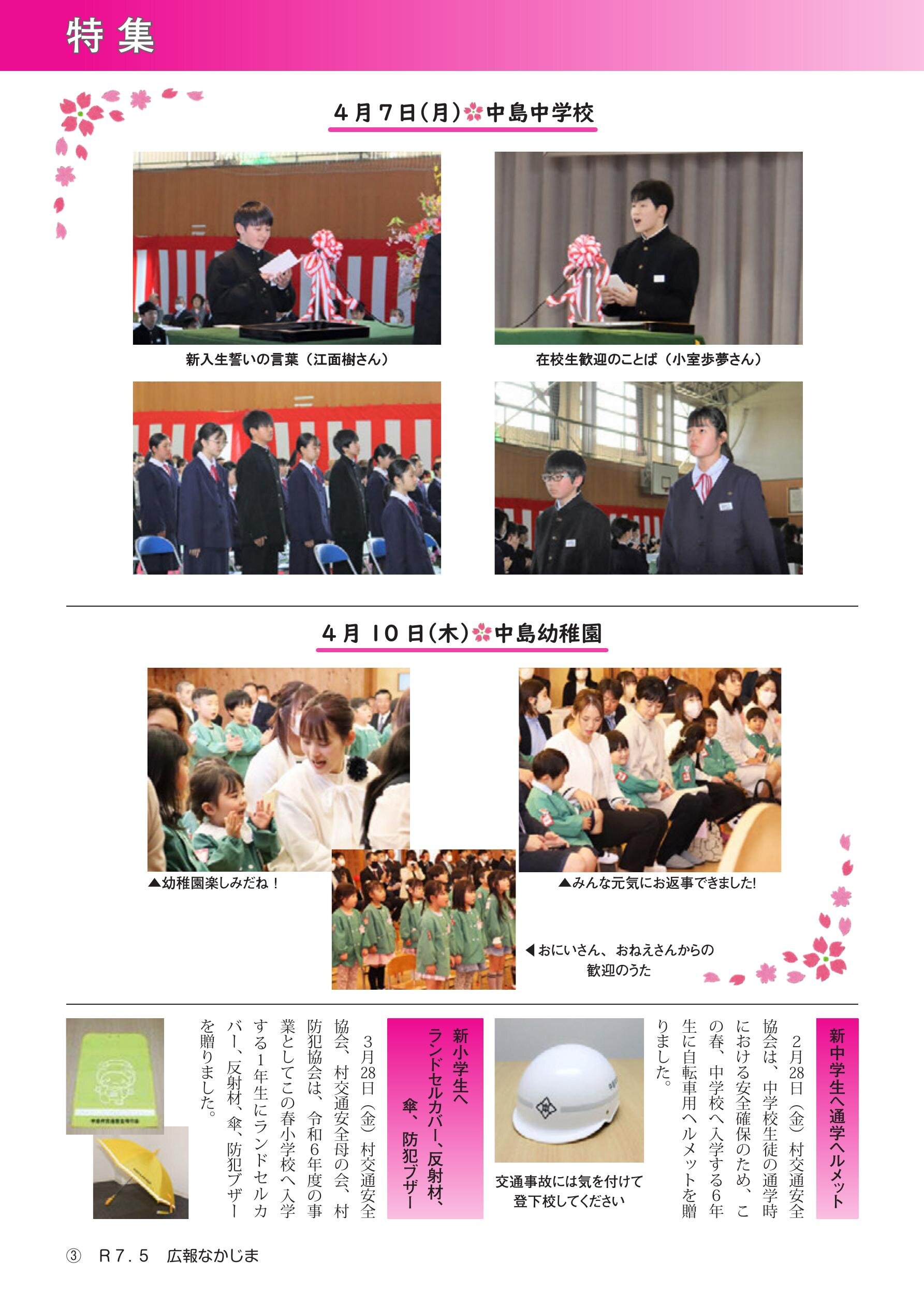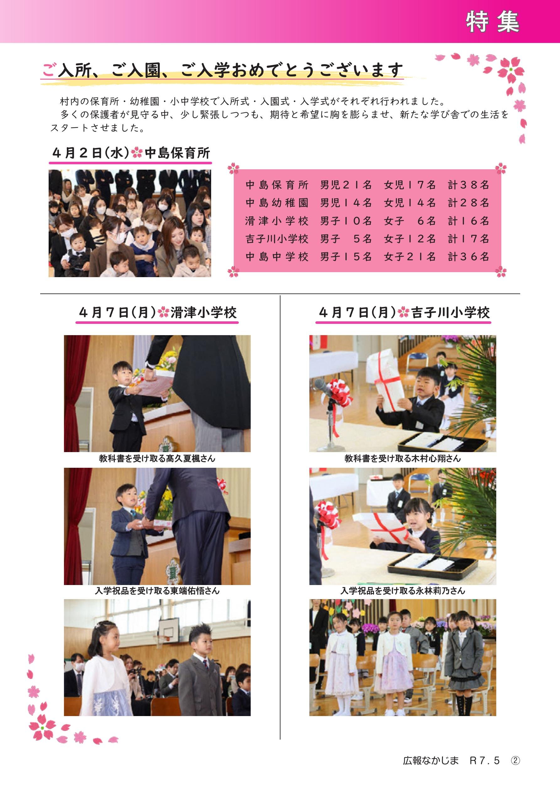 特集 ご入所、ご入園、ご入学おめでとうございます・・・2 村のニュース・・・4
