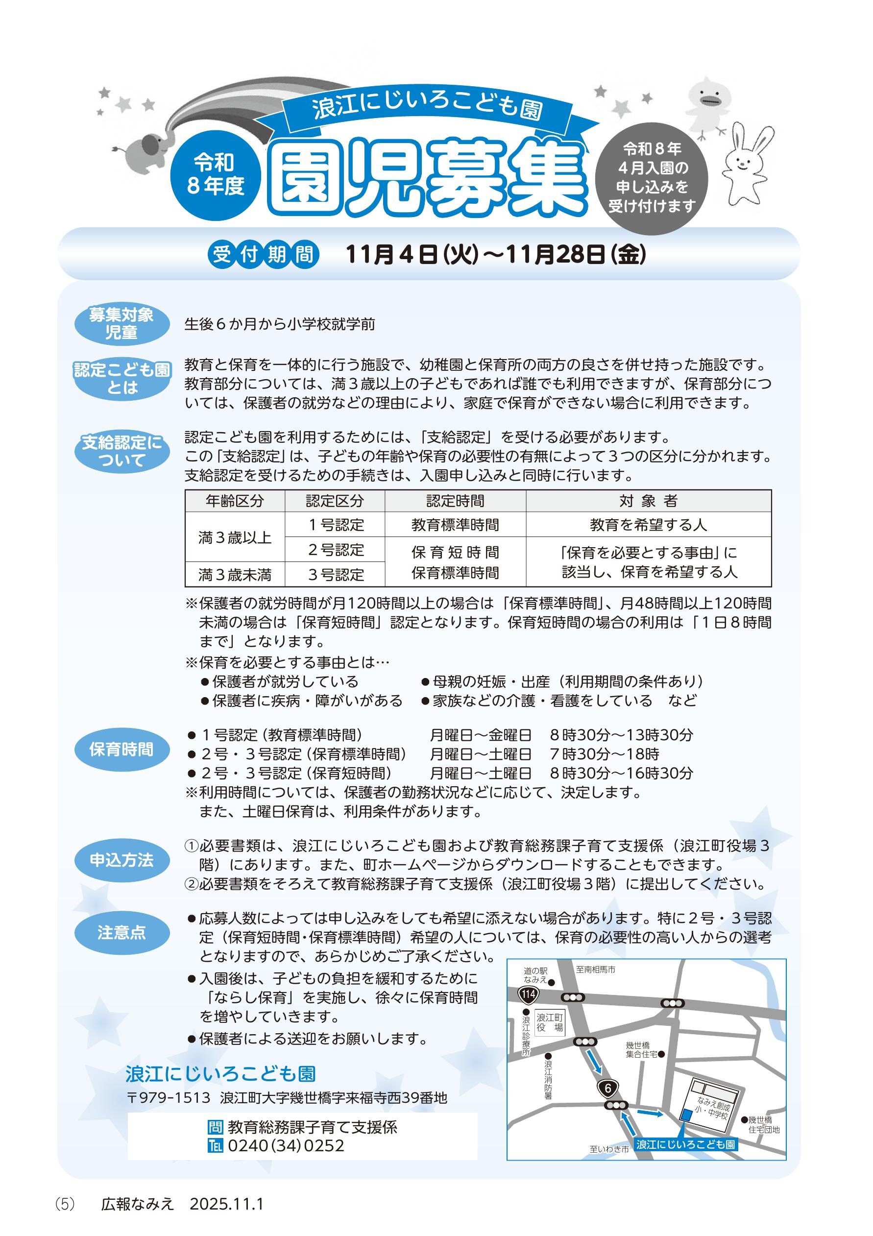 5 浪江にじいろこども園園児募集