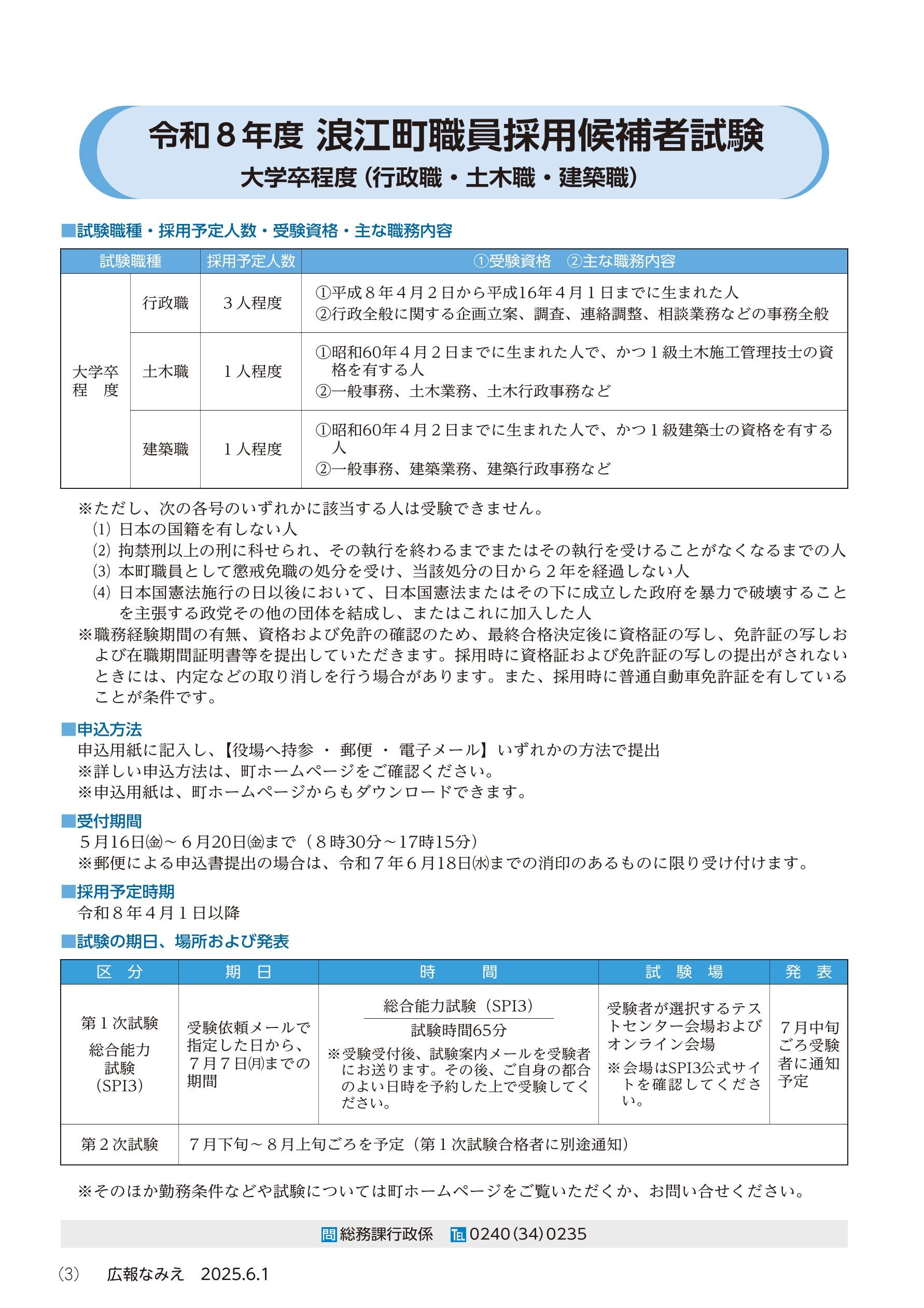 2 浪江町職員募集 4 まちのニュース