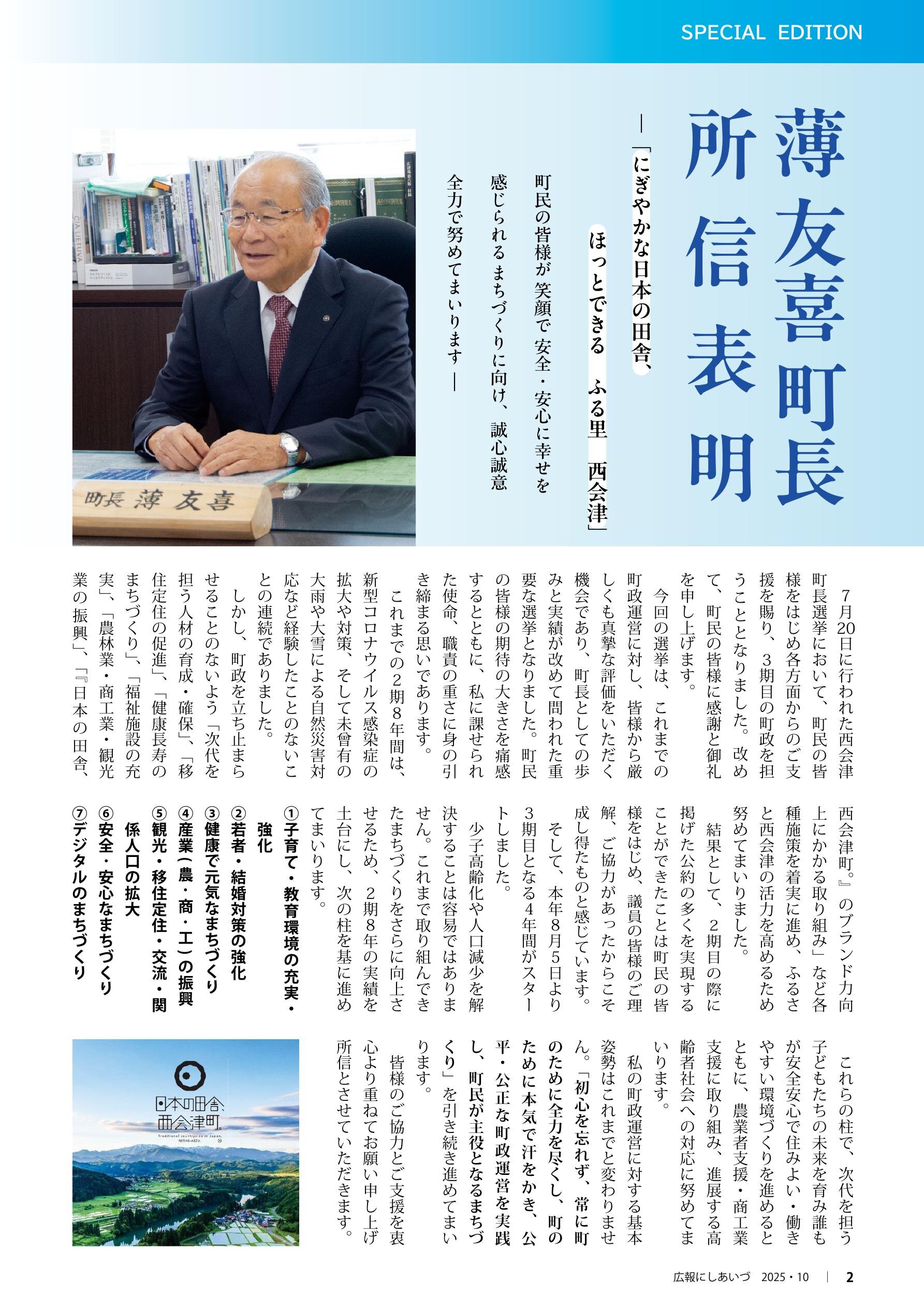 P2 特集 薄 友喜町長 所信表明 P3 まちの話題