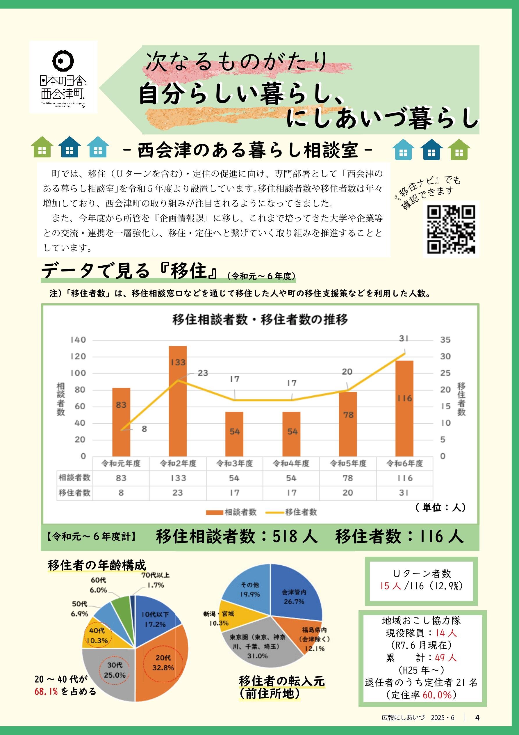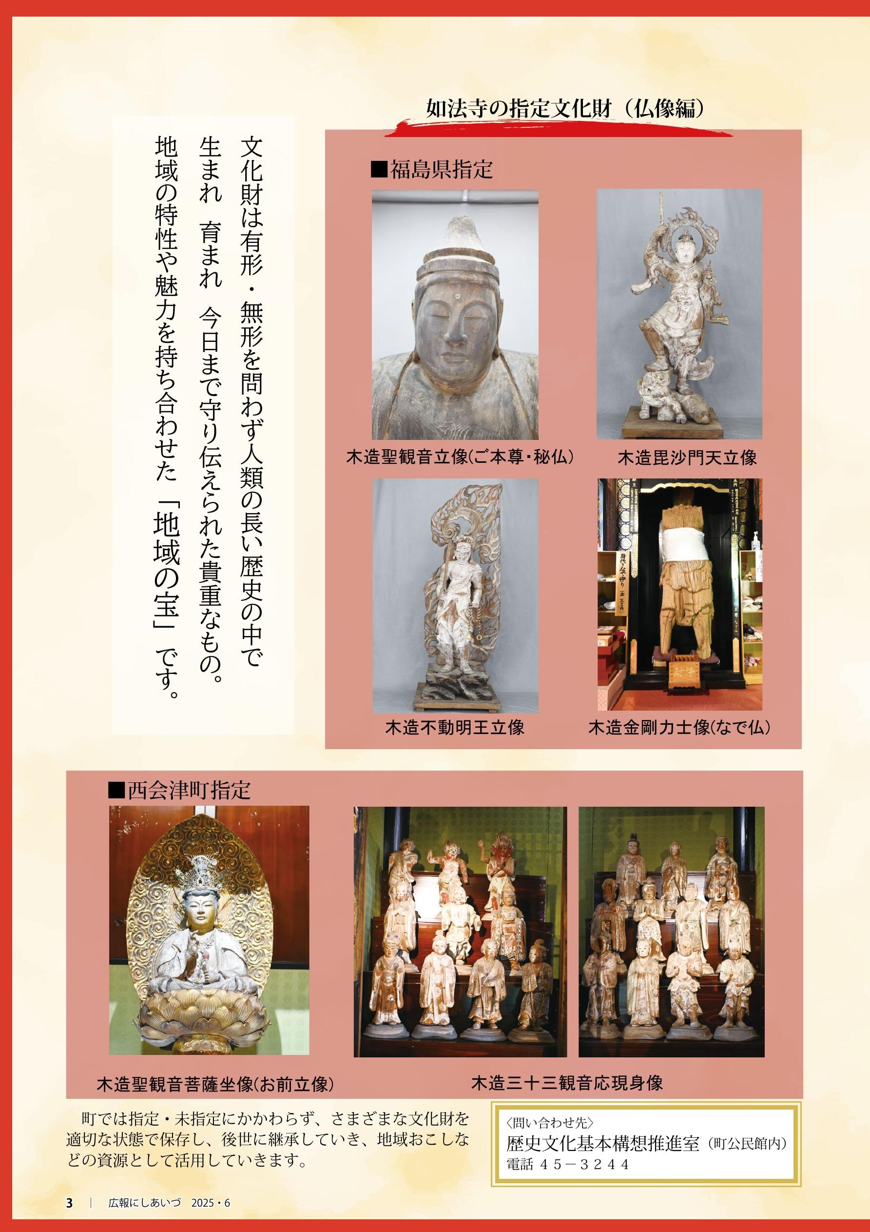 P2 特集1 新たに町指定文化財が追加 P4 特集2 自分らしい暮らし、にしあいづ暮らし P6 まちの話題
