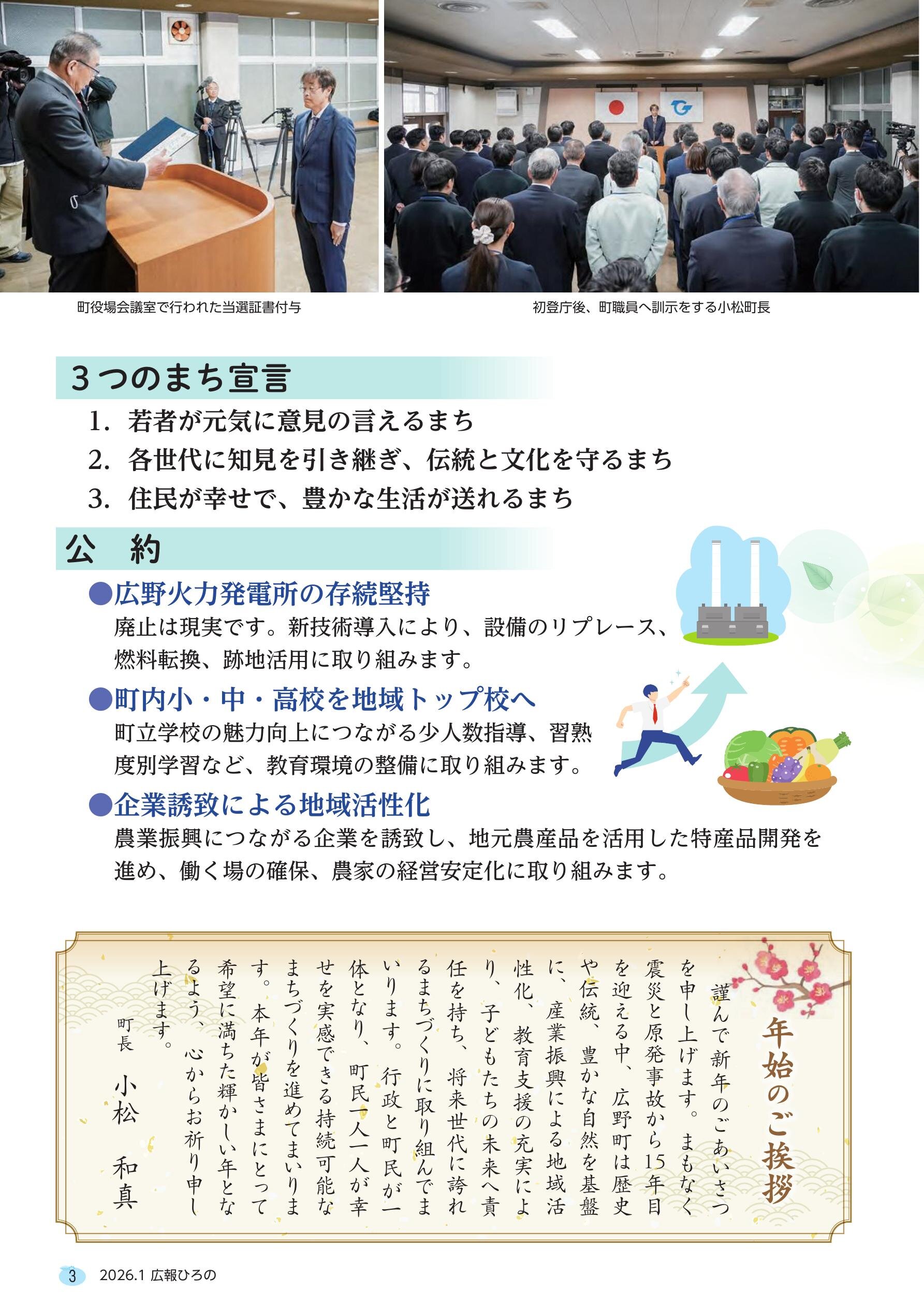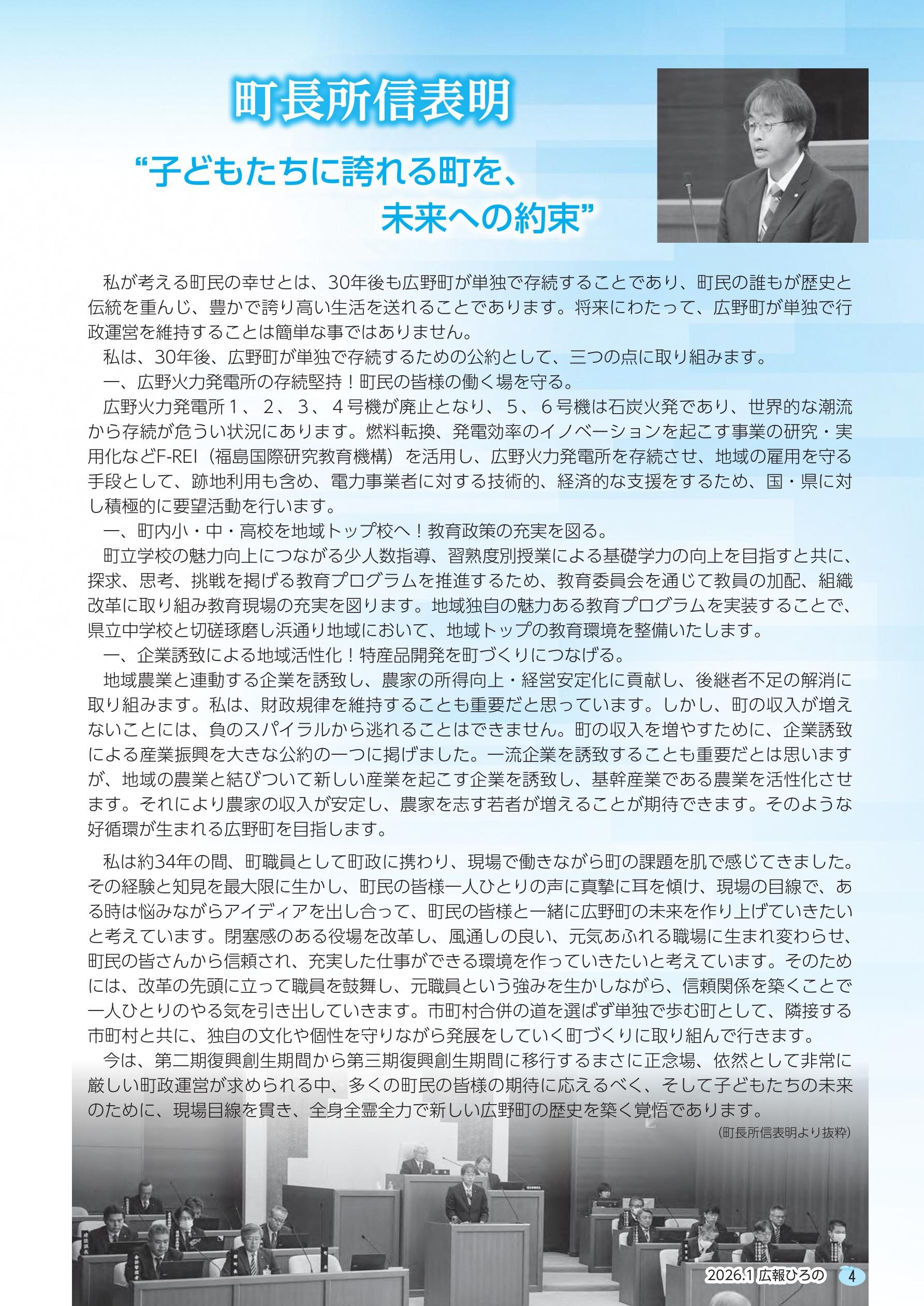 町政に新風、改革の先頭へ 小松和真・・・2 町長所信表明・・・4