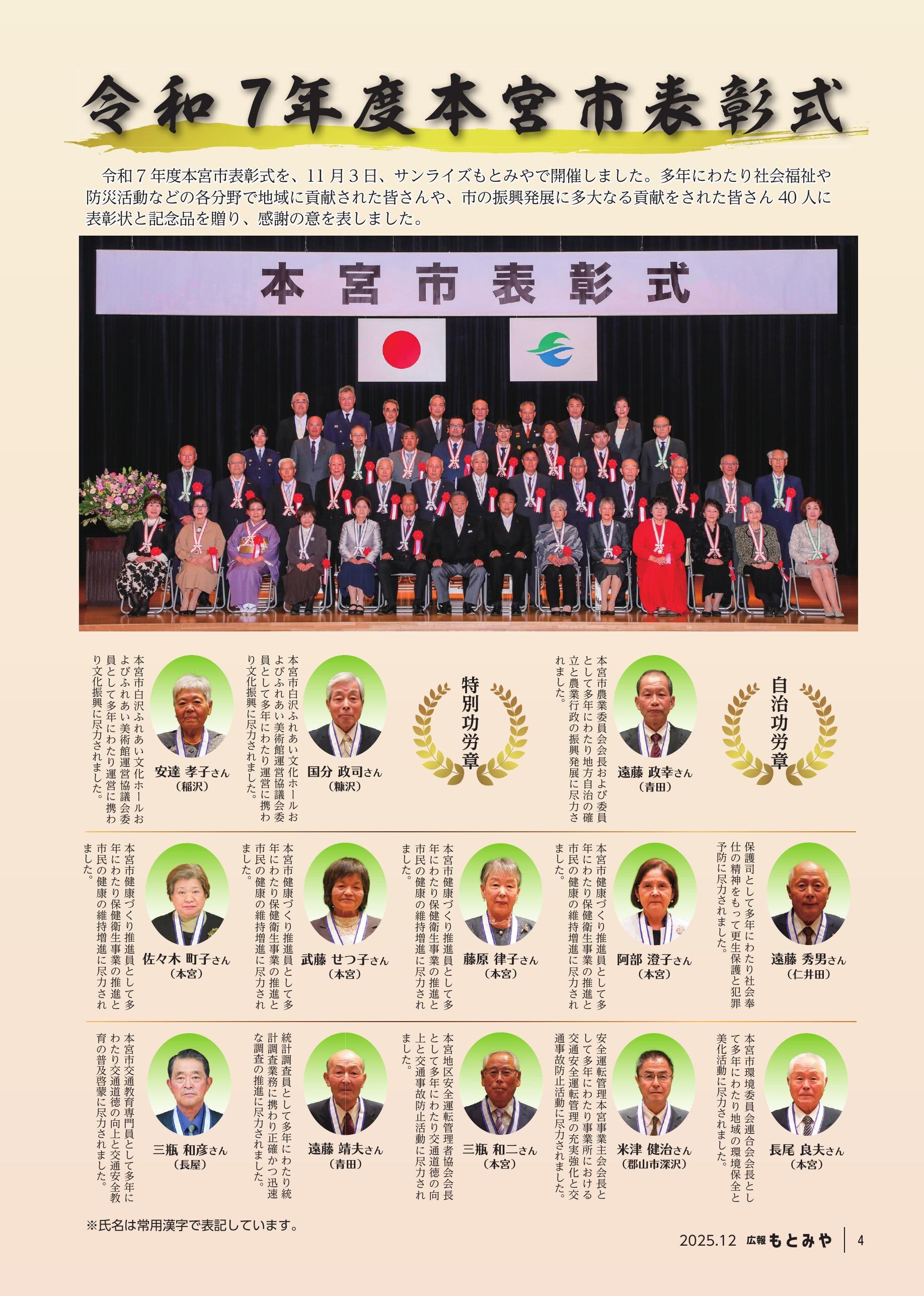 P4 ~5 令和7 年度本宮市表彰式 P6 もとみや秋祭り・本宮市しらさわ秋祭り
