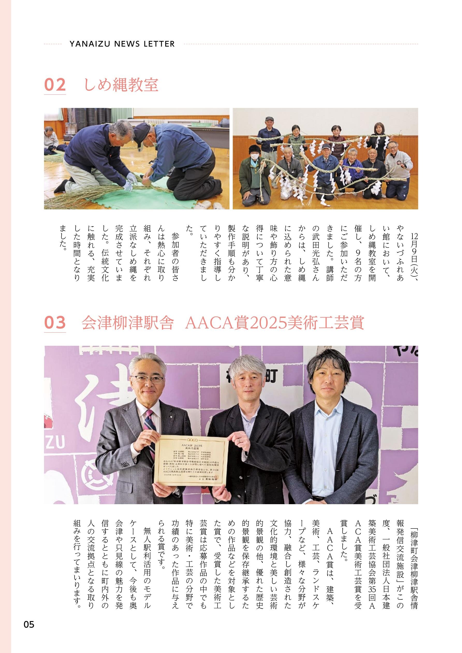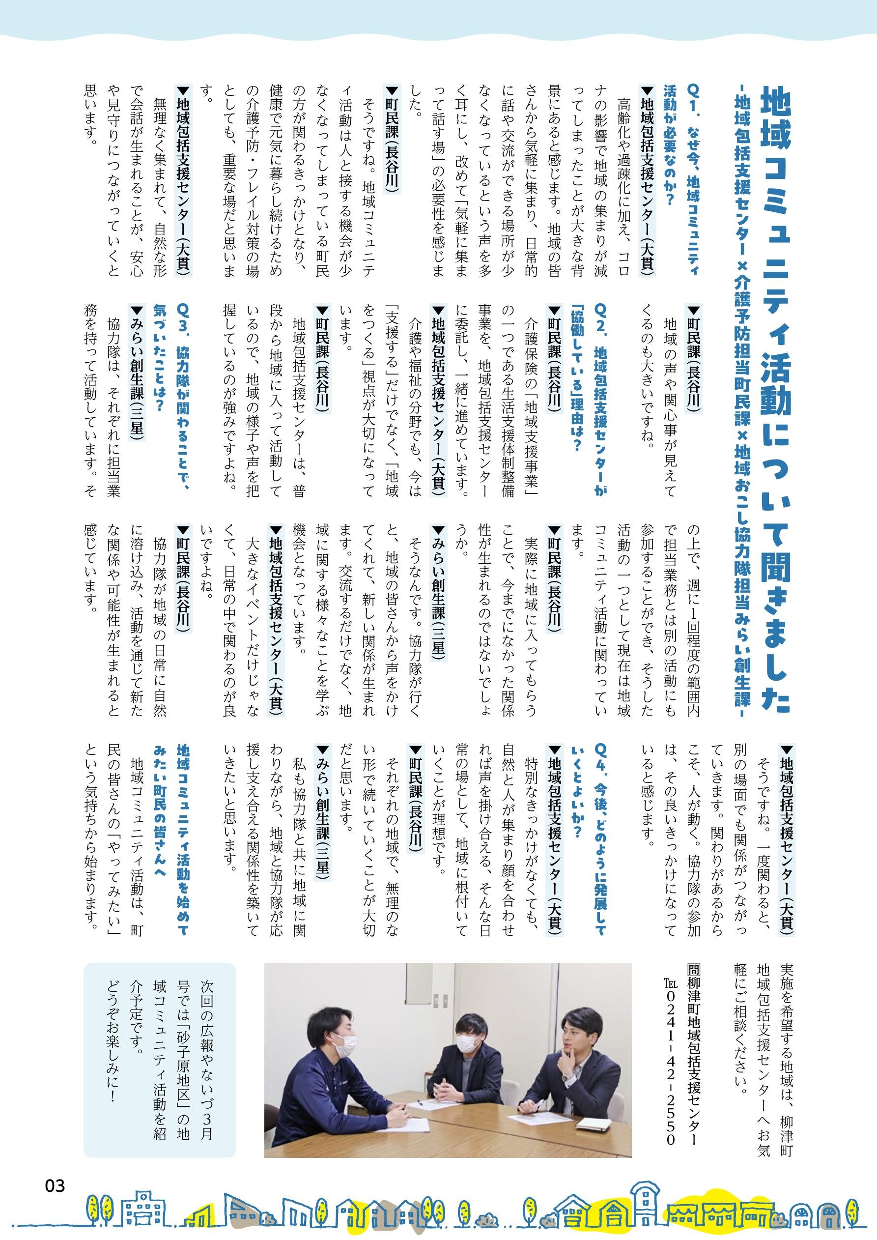 02 地域でつながる、見守りと交流の場 04 YANAIZU NEWS LETTER 11 ミライツナガルだより