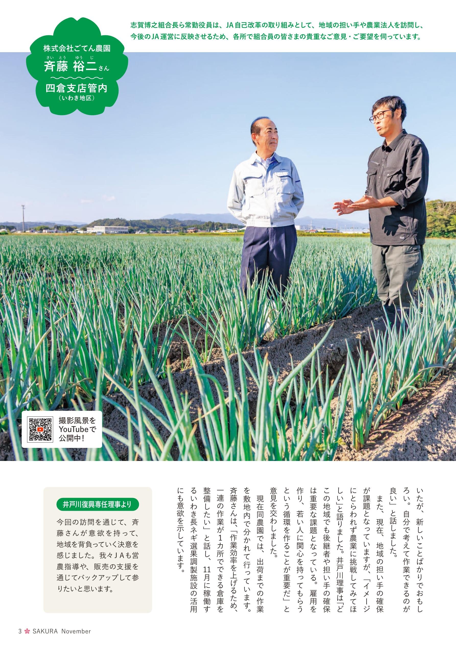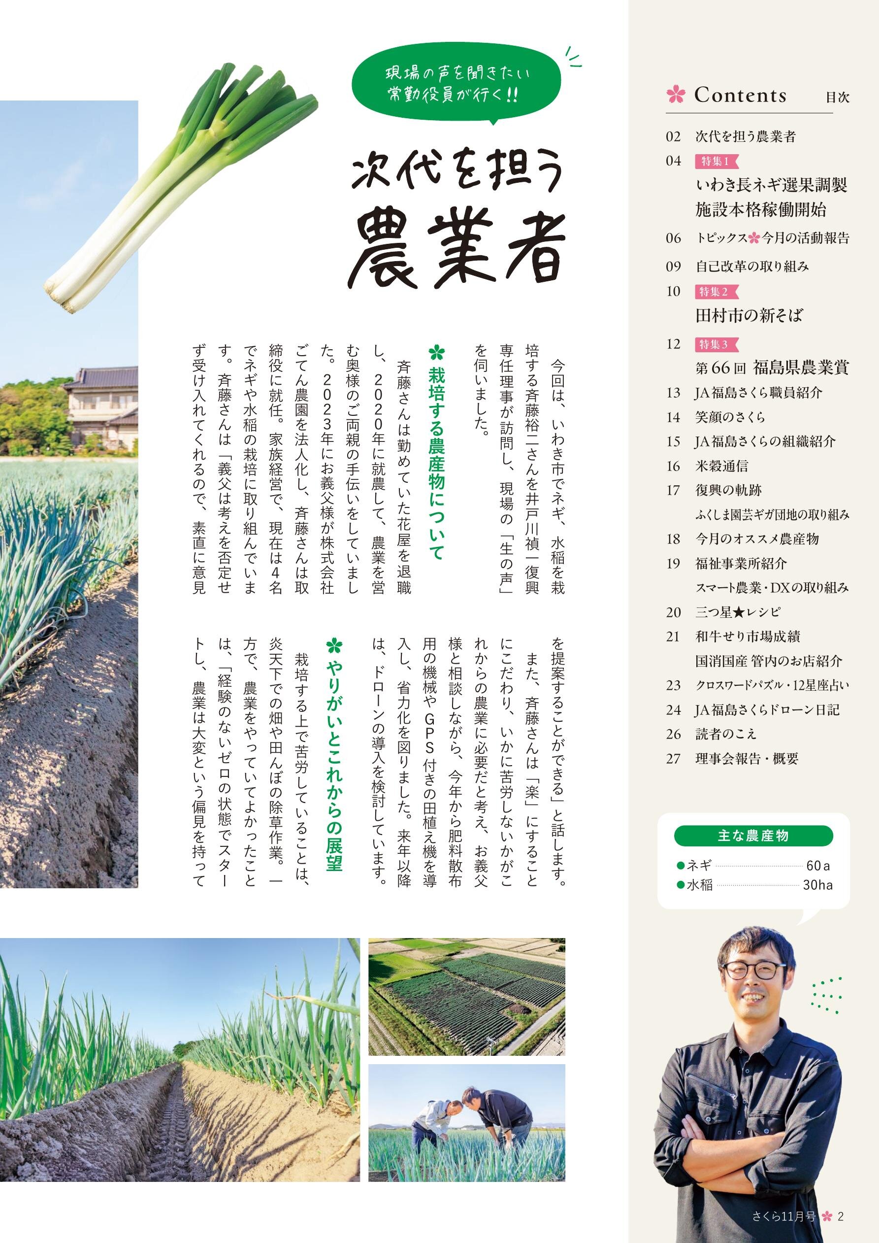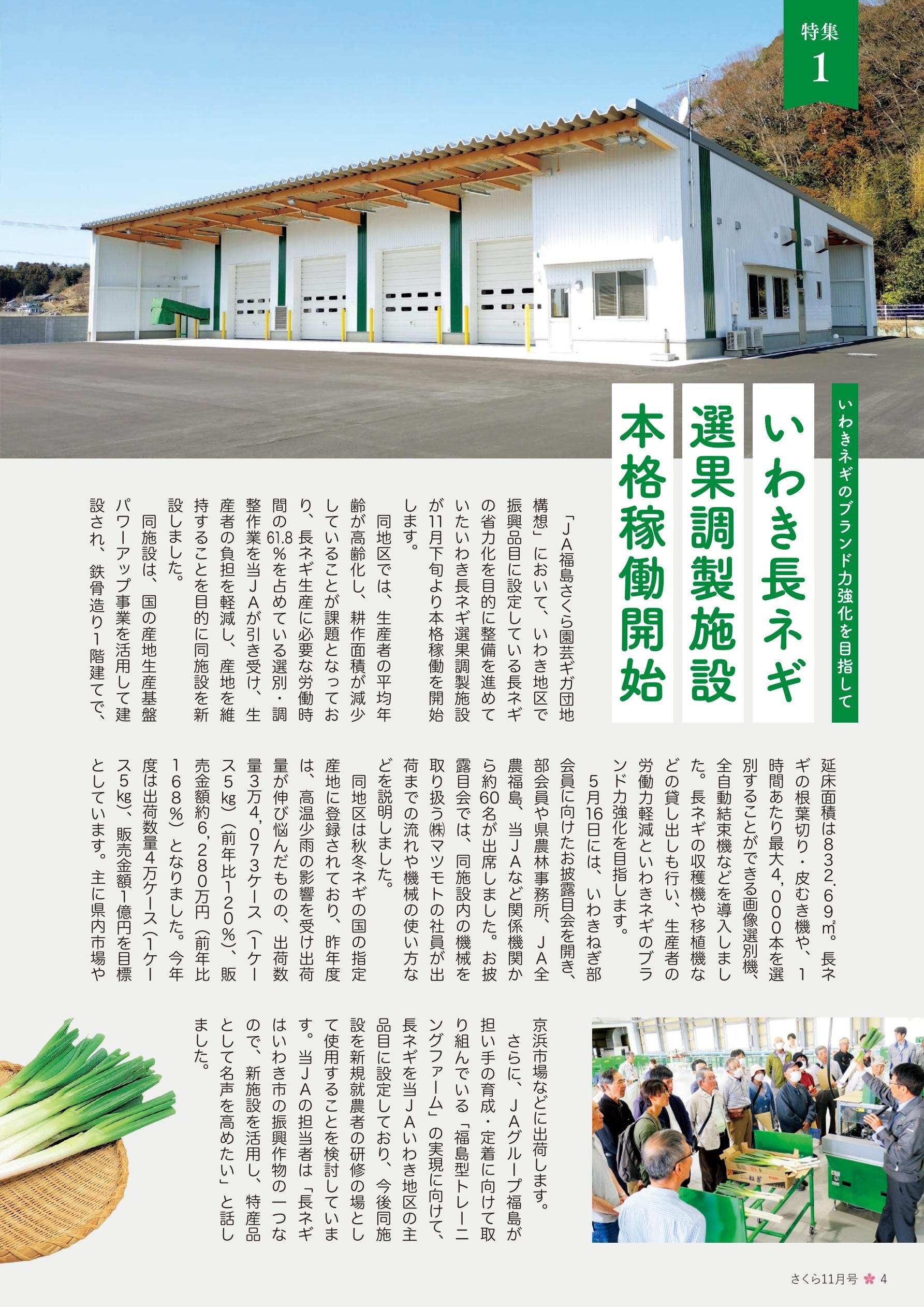 特集1 いわき長ネギ選果調製施設本格稼働開始・・・4 特集2 田村市の新そば・・・10 特集3 第 66 回 福島県農業賞・・・12