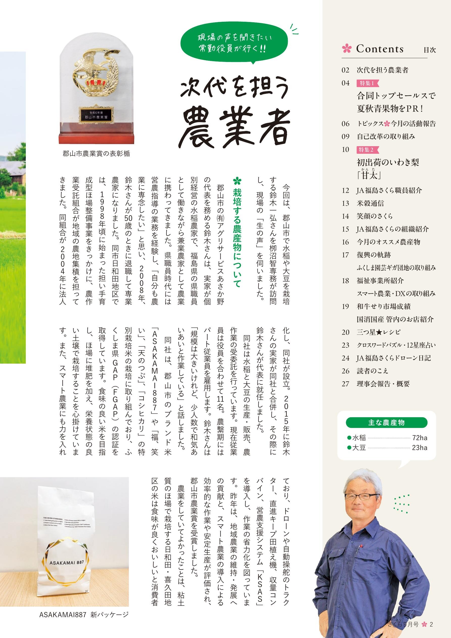 04 特集1 合同トップセールスで夏秋青果物をPR! 10 特集2 初出荷のいわき梨「甘太」